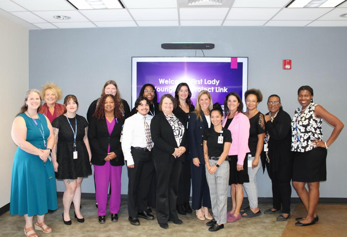 The First Lady visited Project Link, a program of Blue Ridge Behavioral Healthcare, to learn how they support women and families impacted by substance use. Since 1992, Project Link has offered innovative, community-based services — from perinatal mental health care and peer recovery to housing and parenting support — helping mothers, fathers, and children find healing and hope.