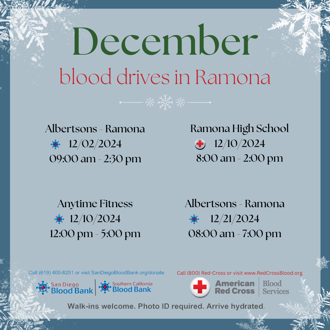 Disclaimer: the Ramona Chamber is not responsible for the flyer content submitted by the community. Contact the event coordinator with any questions. | |