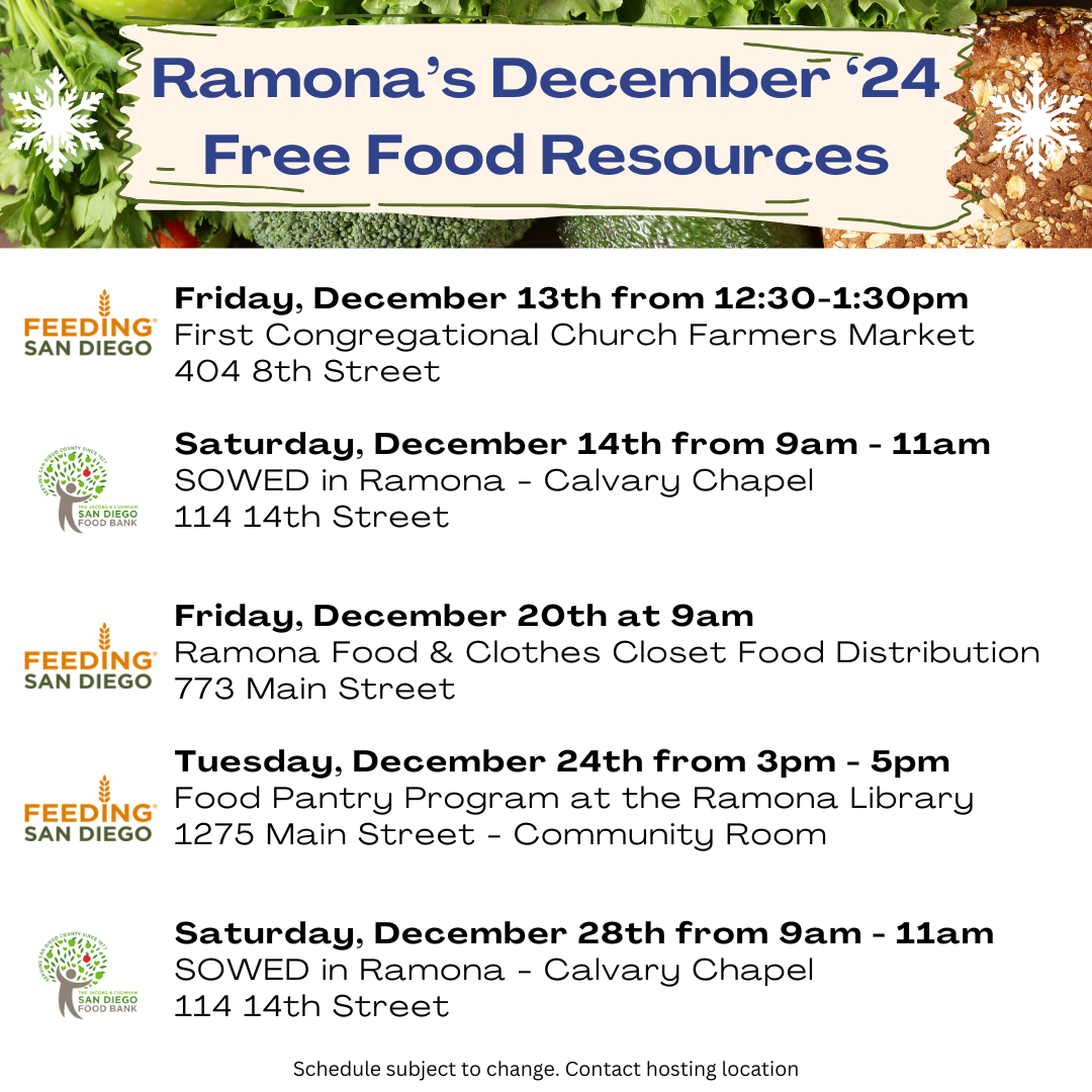 Do you know someone in need of food or other assistance? Please visit our community resources webpage, RamonaResources.com.