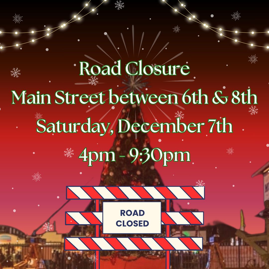 Event hours are 5:00 to 9:00 p.m. with the Tree Lighting at 7:00 p.m.