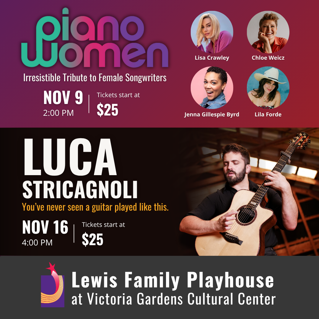 This November, the Lewis Family Playhouse (12505 Cultural Center Dr.) invites audiences to experience the power of two timeless instruments: the piano and the guitar. Across back-to-back weekends, these performances highlight the artistry, emotion, and innovation that only live music can deliver.