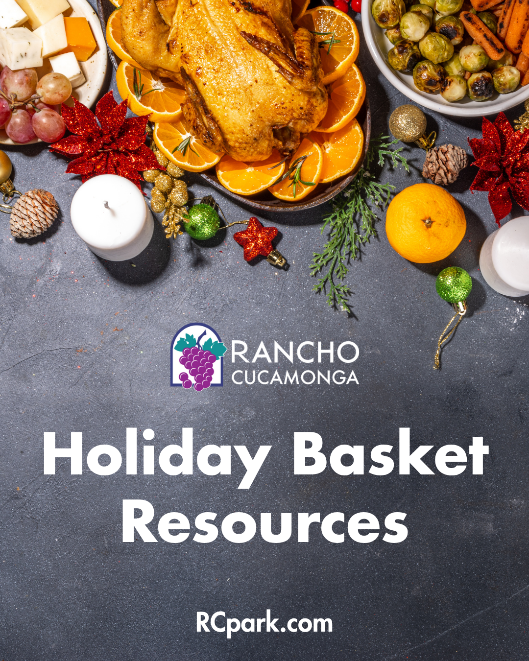 | | While the City of Rancho Cucamonga is unable to provide Holiday Baskets this year, we remain committed to supporting our community. Below is a list of local and nearby organizations offering holiday food assistance. | | | | |