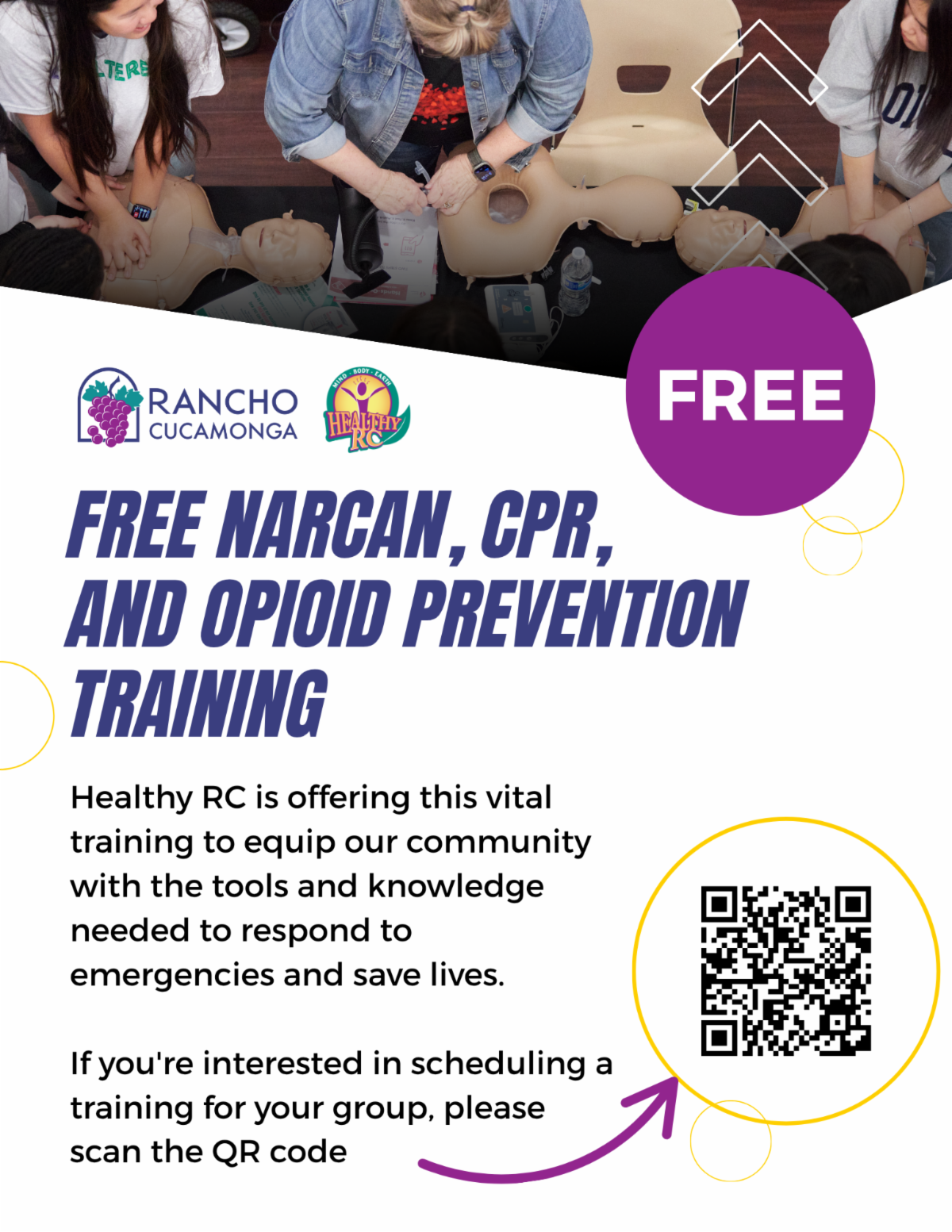 | | FREE NARCAN, CPR, AND OPIOID PREVENTION TRAINING | | Healthy RC is offering free Narcan, CPR, and opioid prevention training to help equip our community with lifesaving skills. Learn how to respond to emergencies and make a difference. Scan the QR code or click the button below to schedule a free training for your group today. | | |
