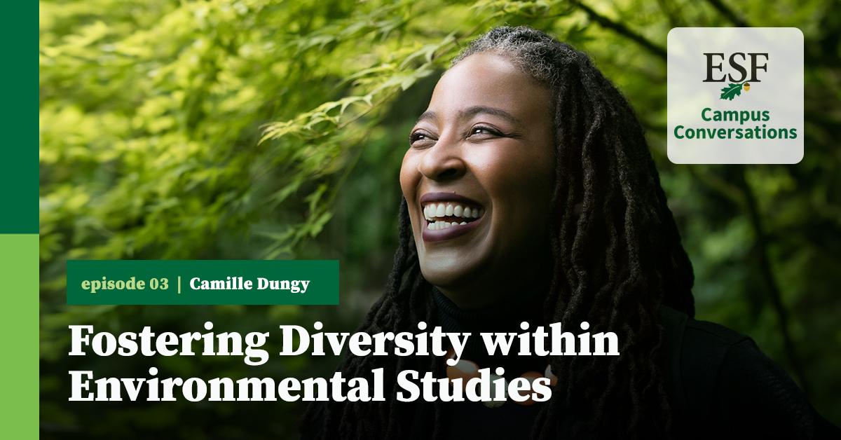 President Mahoney interviewed Camille — ESF’s 2024 Honorary Degree Recipient — with this episode's special co-host Assistant Professor Tyler Dorholt, who is director of ESF's Writing Program and Coordinator of the Digital Storytelling Studio.