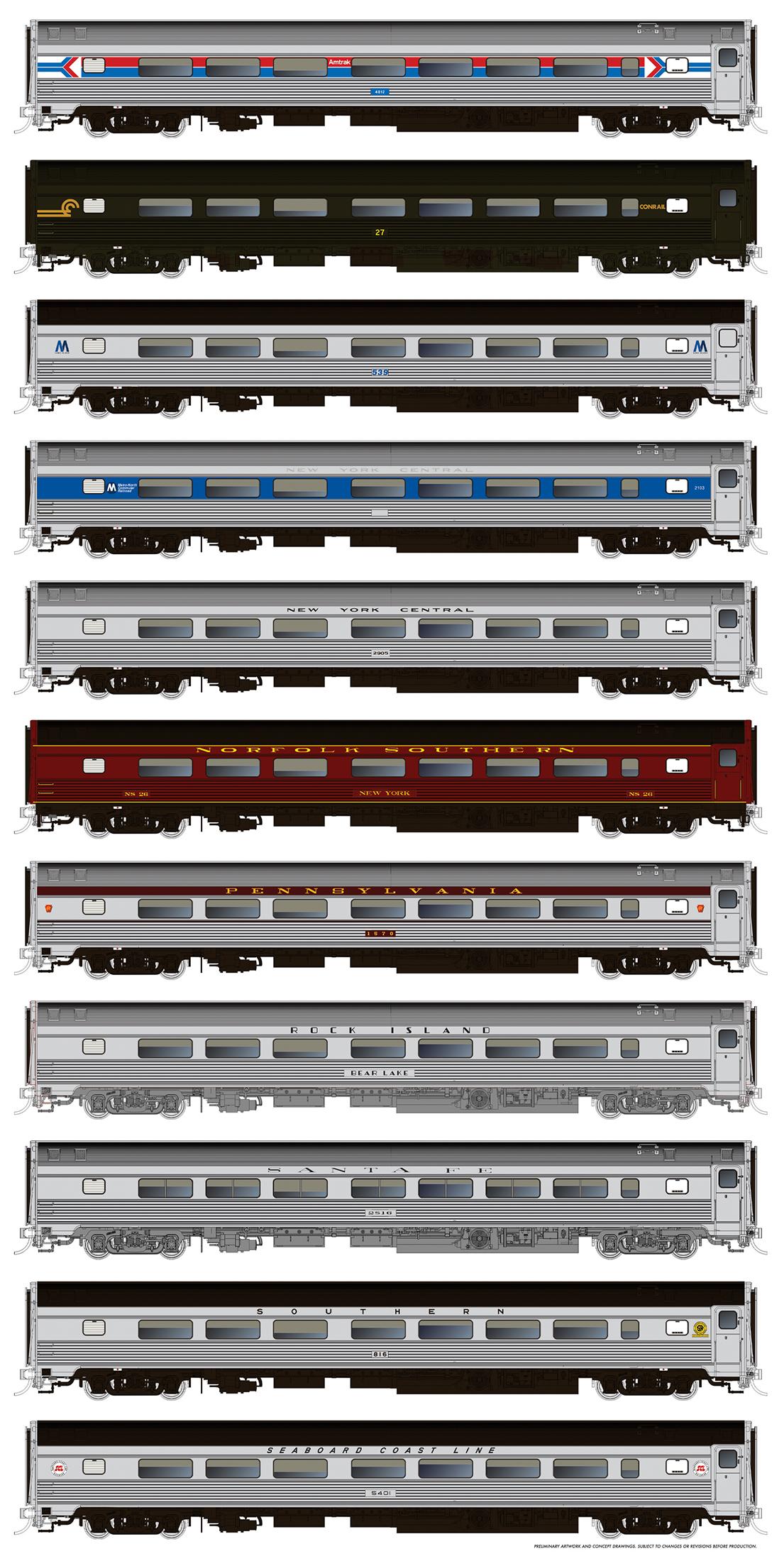 A couple of years ago we announced a new run of Canadian Budd coaches, including VIA's "HEP2" fleet. The factory has finally told us that they have capacity to make these in the spring, so we are delighted to announce that we are adding new American paint schemes to our beautiful HO scale "Superior Stainless" Budd coaches!
