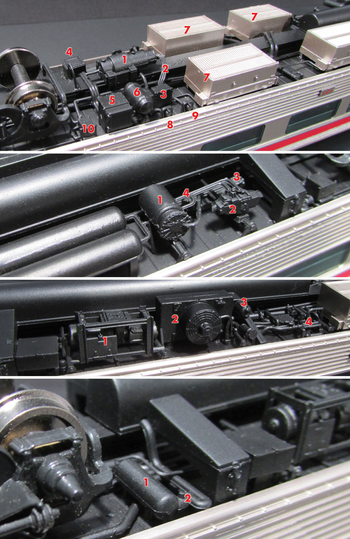 But seriously, all the stuff under the cars is really important for passenger operation. See how many parts on our Budd model coach underbody you can name, and then scroll down for the answers!