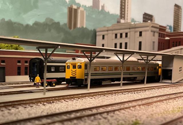 Here we see our RDC in N scale next to a few Super Continental Cars.