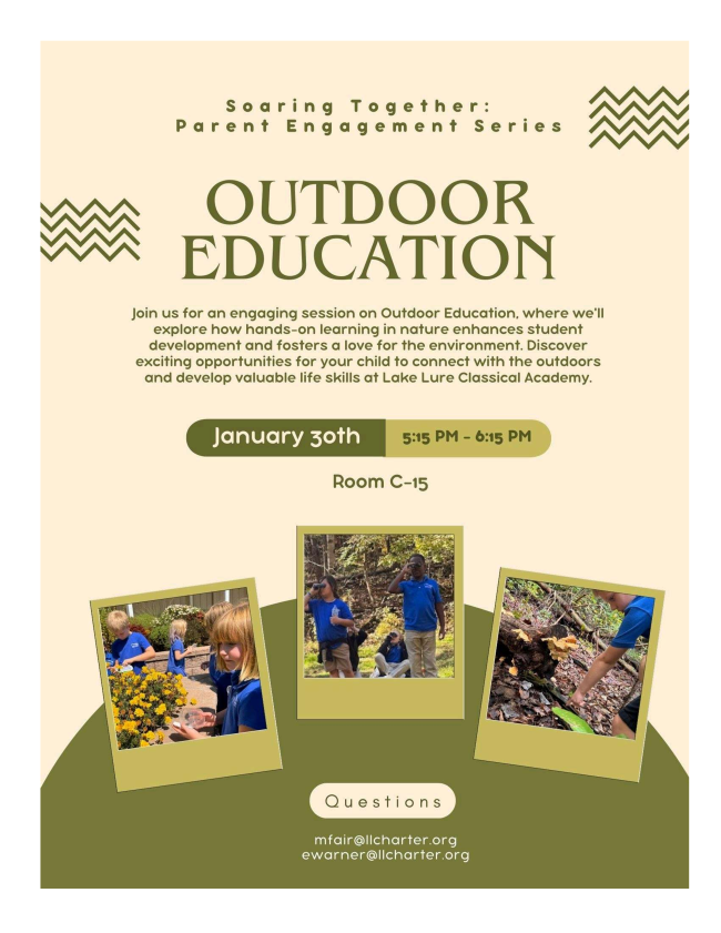 We’re thrilled to kick off our Parent Engagement Series with a focus on Outdoor Education! Join us as we delve into the Outdoor Education curriculum and discuss our goals for the future. If you plan to attend, please take a moment to review the attached flyer for event details and RSVP via the provided link so we can prepare accordingly.
