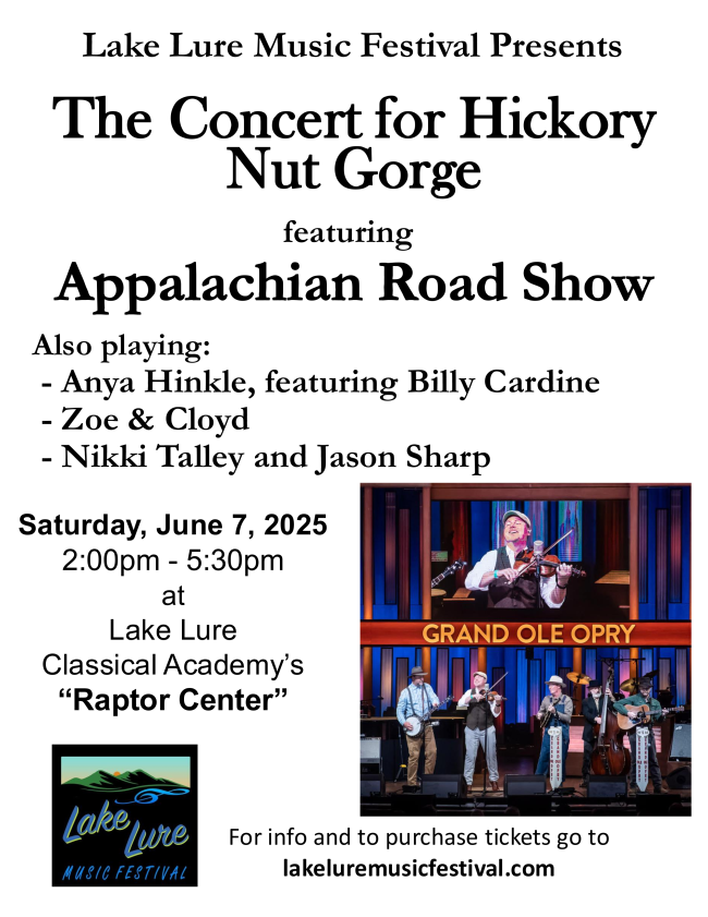| | Parents would you like to receive a "free" ticket to attend the Lake Lure Music Festival? We have received a generous donation to provide free tickets to families. These tickets are limited, so if you are interested in receiving free tickets, please contact Ms. Cohen at bcohen@llcharter.org or (828) 625-9292. | | | |