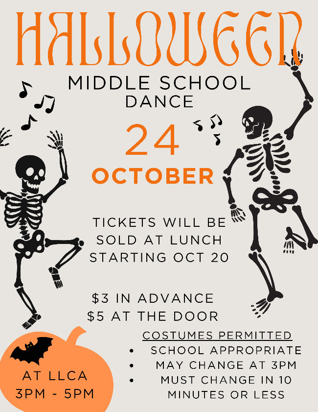 - Friday, October 24th: Middle School Dance, High School Halloween Party