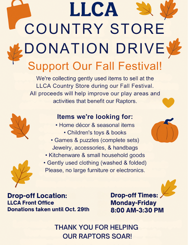 Week of October 20th, 2025 | | LLCA has Holiday Helpers who will contribute to some of our students' holiday wish lists. If you would be interested in possibly having some help this holiday season, please complete this form for EACH student enrolled here at LLCA no later than 11:59 PM on SUNDAY, OCTOBER 26, 2025. Please note that you must complete the LLCA family income survey in order to be considered for Holiday Help. CLICK HERE TO COMPLETE FORM | | | |