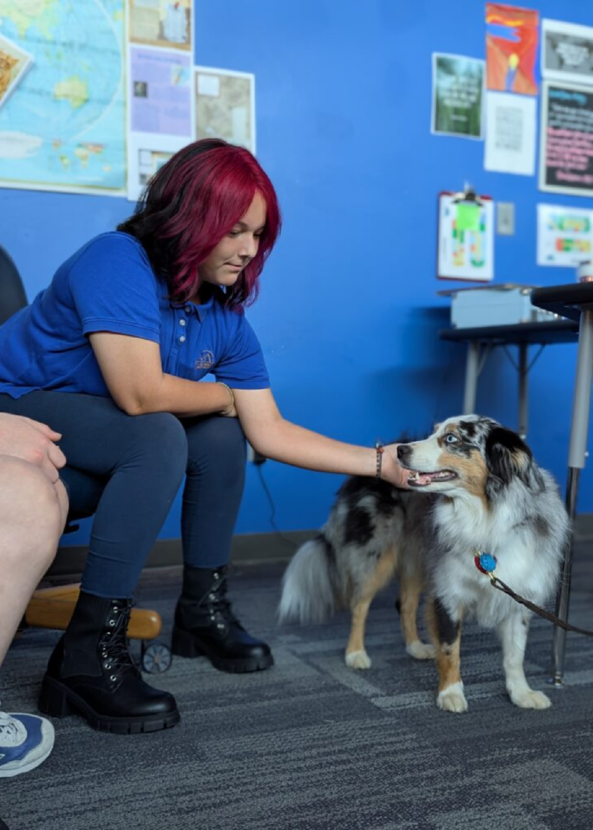 | | Pet Therapy of the Ozarks Visits 6th Grade | | We had a few visitors for Advisory and sixth grade Ancient History on Monday morning! Former Summit board chair Susan Miranti and her dog Remy from Pet Therapy of the Ozarks joined us for some pet therapy time. Remy showed us several tricks, and Ms. Miranti had students help demonstrate different commands. We're so grateful for their time and the joy they brought us! | | Joe Easter, Native Garden Weeding | | |