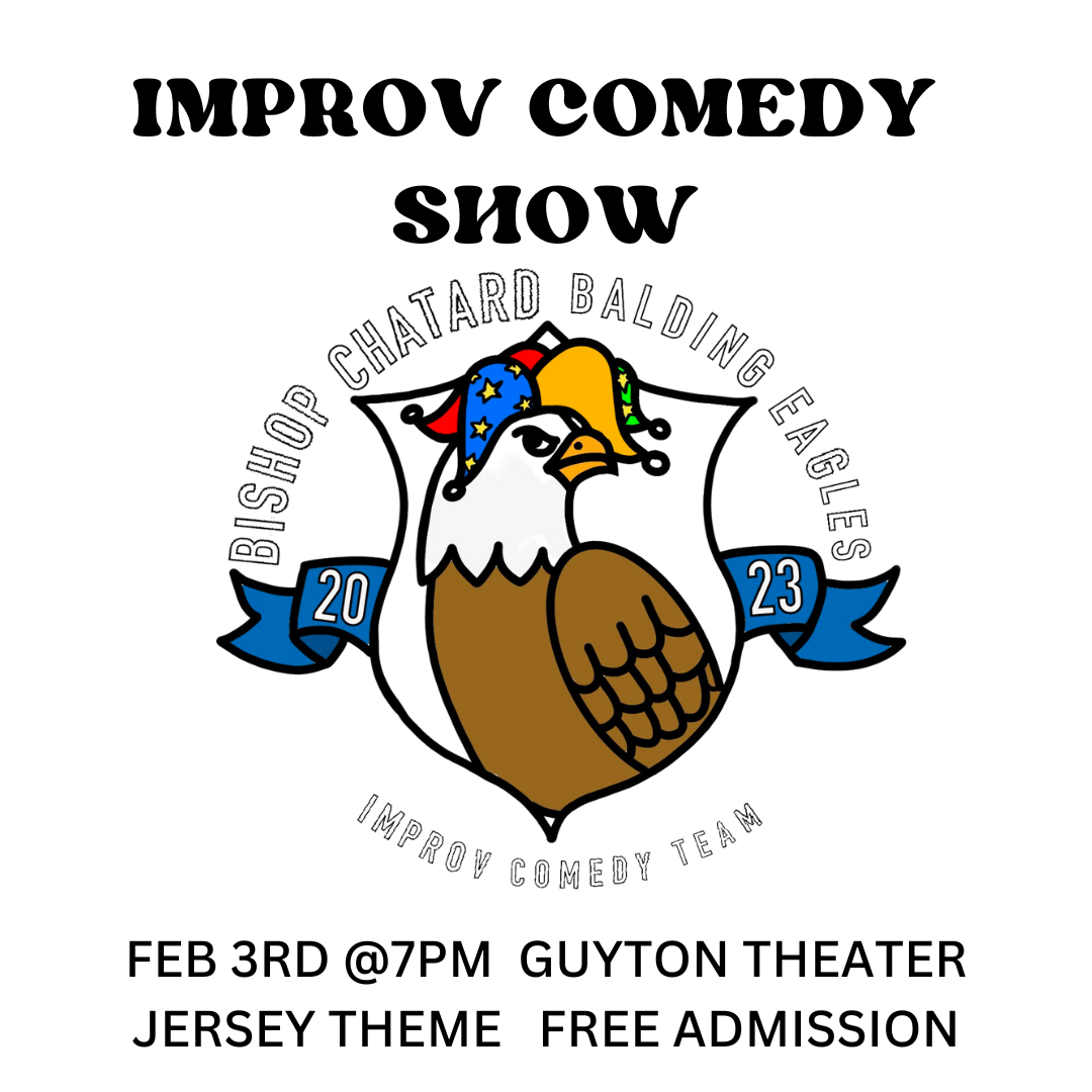 Come laugh with the Balding Eagles Improv Team on Friday, Feb. 3, at 7:00 p.m. in the Kyle Guyton Theater for a fun jersey-themed improv show.