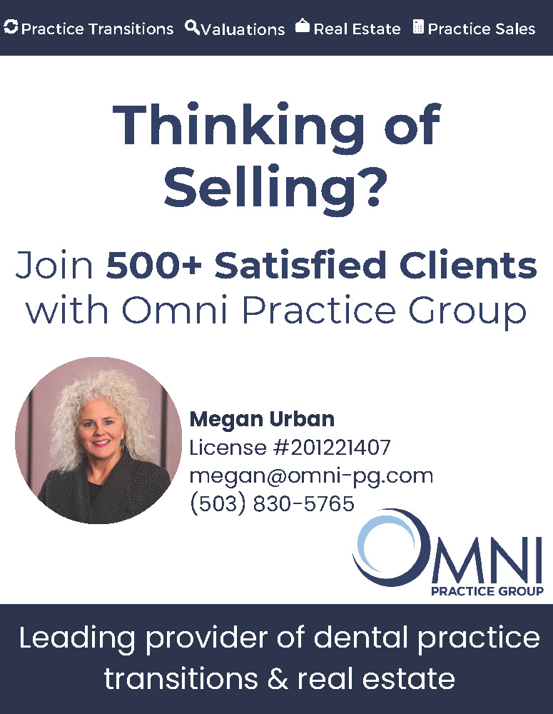 Dental Practice Deal of the Year in NE Portland, OR (ORD190) Immediate opportunity with seller willing to work back 1-2 days per week. Currently working 3 days per week and 2 Saturdays per month. Location near St. Vincent Providence Hospital, I-84 and I-205. Approximate average annual EBITDA is over $220,000, about 40% of collections. In-network with some PPOs and 65% is OHP. $562,000 average collections last 3 years. 6 ops, 5 equipped. $230,000 asking price. Contact Megan Urban at 503-830-5765 or megan@omni-pg.com for more information. Lic.#201221407 (Omni Practice ID: ORD190)