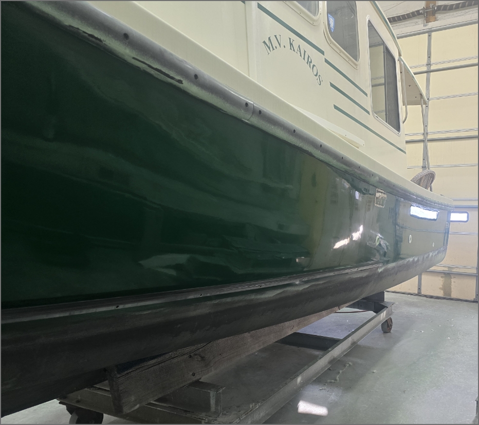 Our team got to work, carefully buffing off the old ceramic coating to reveal the gelcoat underneath. Then, they applied a fine compound wax to restore its shine and protect the fresh surface. The result? A boat that looks as good as new! |