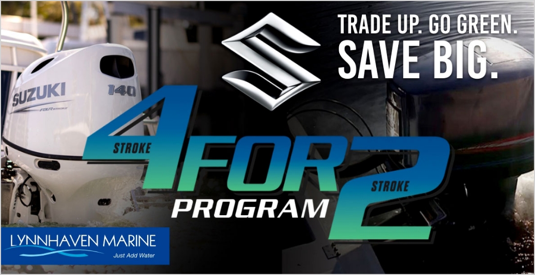 At Lynnhaven Marine, we’re always looking for ways to bring our customers the best in marine technology while also taking care of our waterways. That’s why we’re excited to share Suzuki Marine’s 4-4-2 promotion—a program designed to help boaters upgrade to cleaner, more fuel-efficient 4-stroke outboards while responsibly removing old 2-stroke engines from the water.