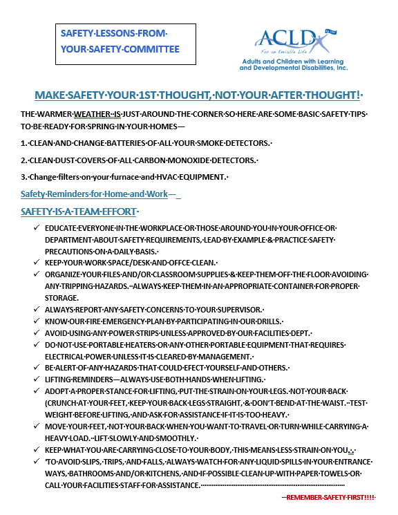 The Organizational Care Committee is always looking for new ideas and suggestions from all of YOU to continue to make ACLD one of the best places to work, and for children and adults to receive the highest level of supports and services.