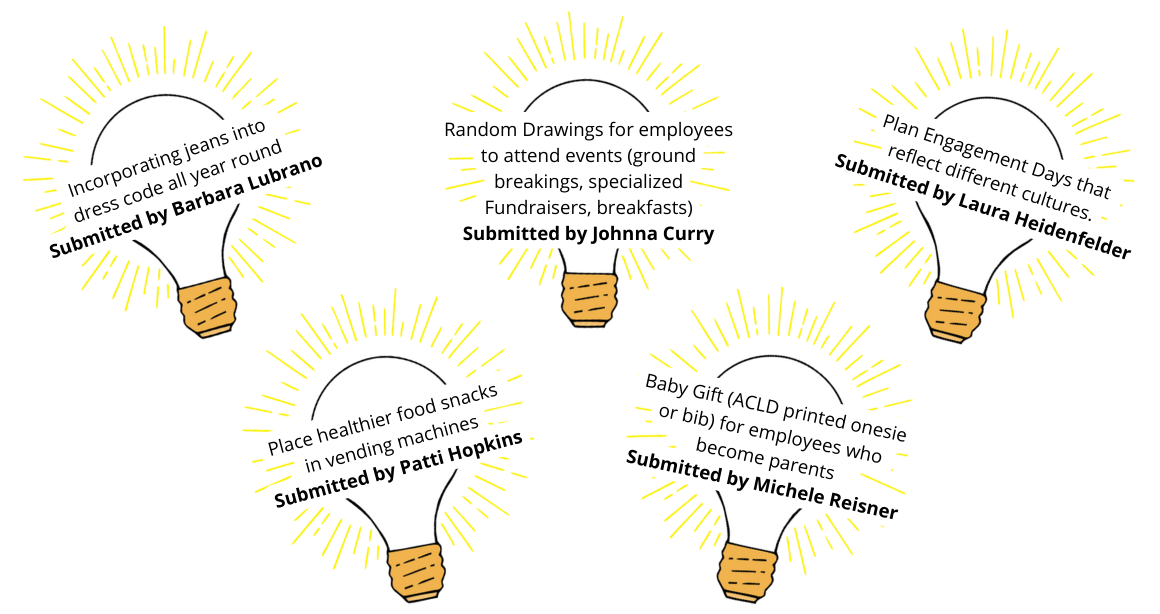 The Organizational Care Committee is always looking for new ideas and suggestions from all of YOU to continue to make ACLD one of the best places to work, and for children and adults to receive supports and services.