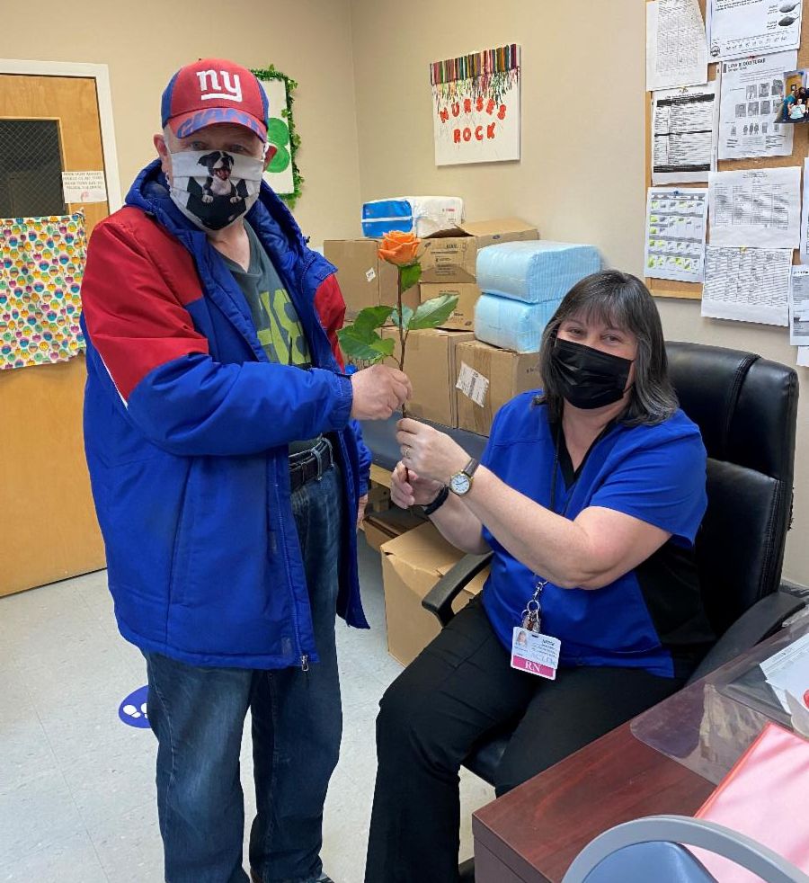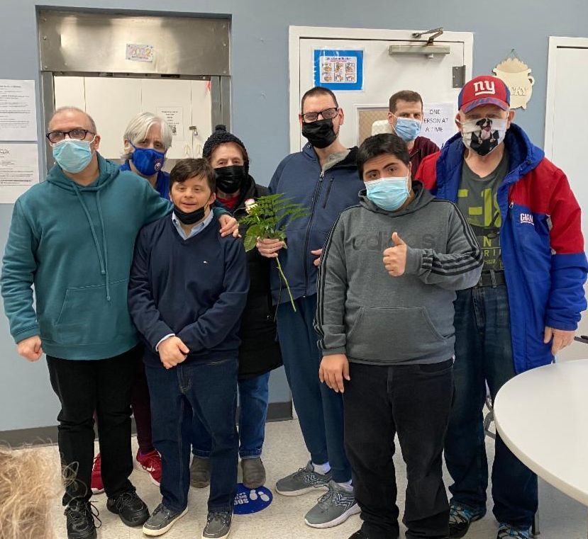 Adults supported at the Hauppauge day habilitation site purchased roses to hand out to all women at the program.