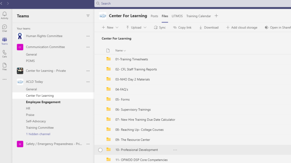 Message from the Center for Learning: The CFL runs reports which detail the training status of ACLD employees. We have posted a new version of this report. It can be accessed by going to MS Teams. Find the ACLD Today team and the Center for Learning channel underneath that.