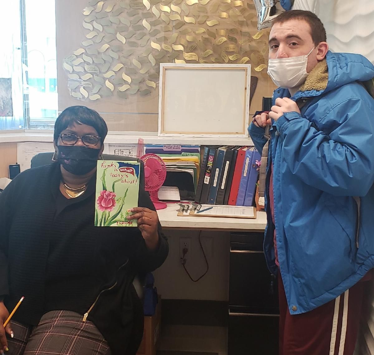 See below for pictures of the breakfast and of the cards that men and women supported in the Bethpage day program made for their staff.