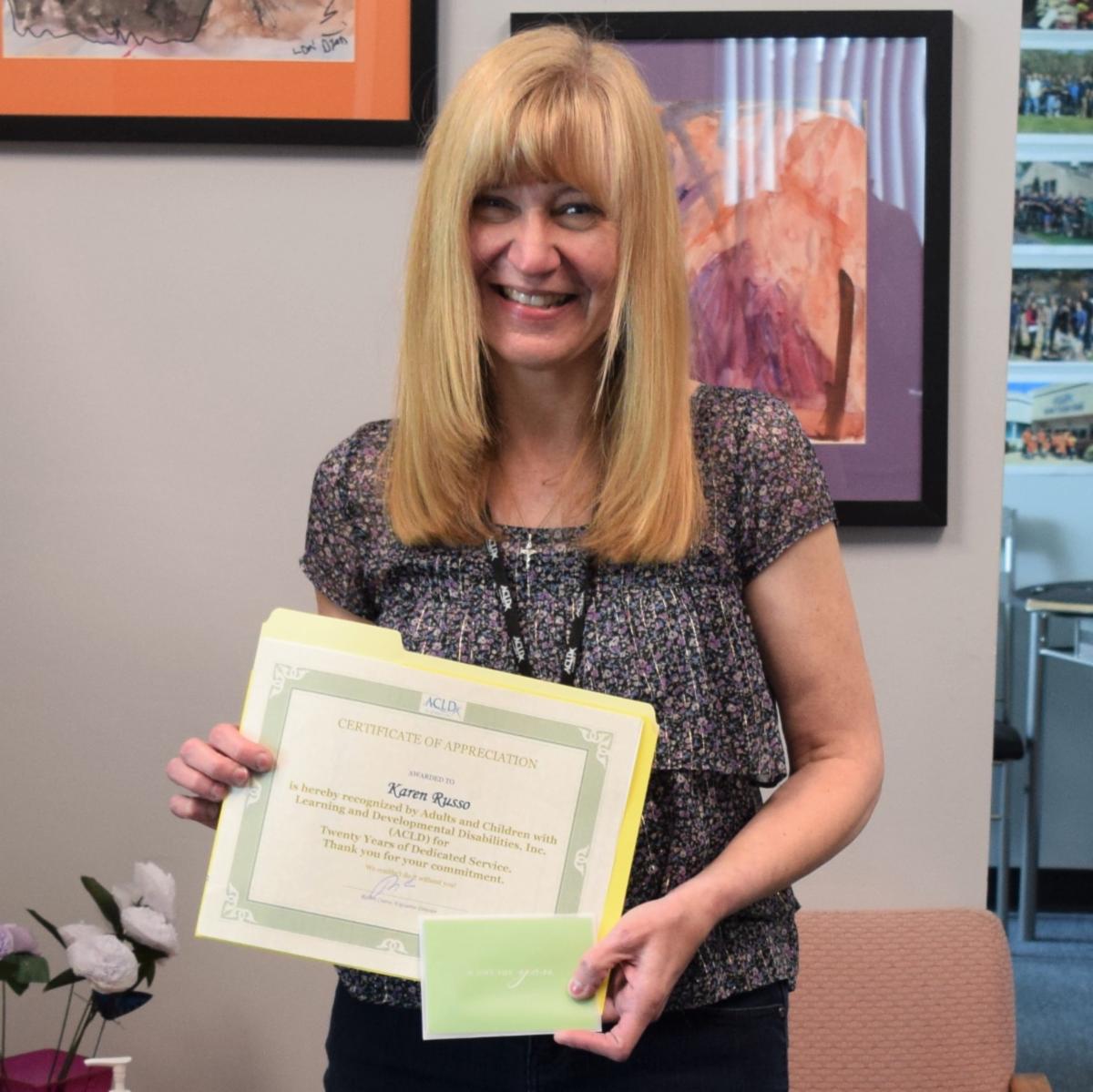 Congratulations to Karen Russo Administrative Assistant in the Development and Community Relations Department, for celebrating her 20 Year Anniversary of working at ACLD last month.