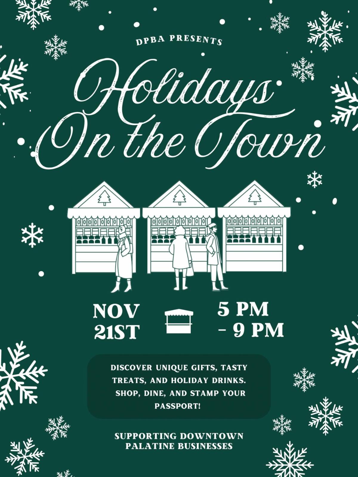 | The annual DPBA (Downtown Palatine Business Association) Holidays on the Town is tomorrow! Enjoy an evening of local shopping, dining, community, and holiday cheer on Friday, November 21, 5 - 9 PM. | |
