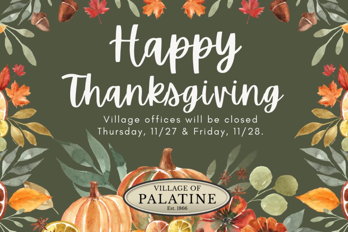 The Village is granting Village-wide overnight parking permission during the Thanksgiving holiday, Friday, November 21 through 6:00 a.m., Tuesday, December 2. You may park vehicles on the street overnight during this time.