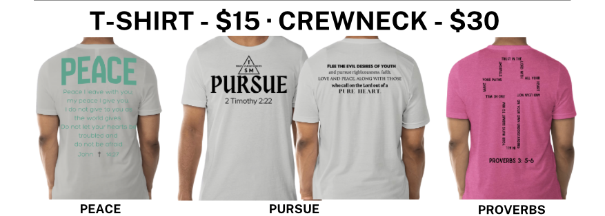 Shirts are $15 and crewnecks are $30, with a portion of proceeds supporting TSM retreats, service projects, and outreach. Your purchase encourages our students, celebrates their creativity, and supports the life of our Student Ministry.