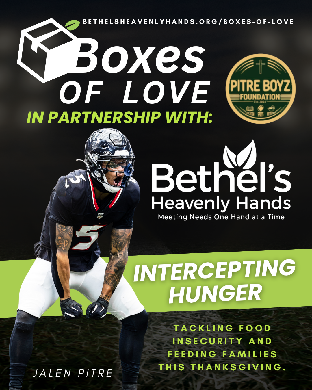 Join The Pitre Boyz and Bethel’s Heavenly Hands as we pack thousands of Boxes of Love—bringing food, faith, and hope to Houston families facing hardship this Thanksgiving.