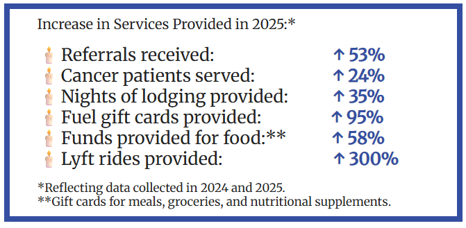 🕯️We received over 2,000 referrals from Central Ohio medical institutions requesting support for cancer patients who are in need.