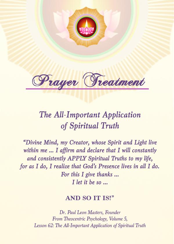 Our Father-Mother God who is in the kingdom of heavenly consciousness within our minds. Holy be your presence in our awareness. We open our minds to your kingdom of higher heavenly consciousness. Awaken our earthly direction in life to the universal will of your heavenly mind. Give us this day our daily nourishment of the presence of your spirit. And as you forgive us—so in turn, may we, by your presence in our minds forgive others. And inwardly guide us away from all that is not of your presence into your light. For yours is our true inner power and the glory of our true selfhood for ever and ever.