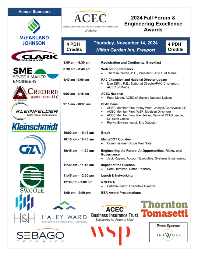 ACEC of Maine’s President, Theresa Patten, National Director Dan Diffin, Vice President Mark Adams, and Executive Director Tanya Griffeth attended the ACEC Fall Conference in New Orleans, which started on Sunday, October 20, 2024.