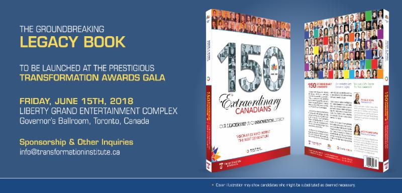 This year, the book titled, "150 Extraordinary Canadians: Our Leadership and Innovation Legacy" will be launched at the gala. The leaders and innovators will be celebrated for their corporate, public sector and philanthropic contributions to the success of our great nation. They will be featured in the full colour, glossy, world class coffee table legacy book. This will also be presented via television, a documentary film, interstitials and a multimedia presentation as a part of the Envision Canada initiative.