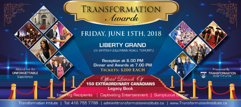 The prestigious Transformation Awards gala will be held on Friday, June 15th 2018 at Liberty Grand Entertainment Complex in Toronto. You are invited to celebrate the spirit of excellence and harmony. A panel under the direction of the Transformation Institute for Leadership and Innovation as well as Silvertrust Media, the parent company of Diversity Magazine and other publishing, broadcasting and special initiatives, selects honourees and facilitates the gala activation.