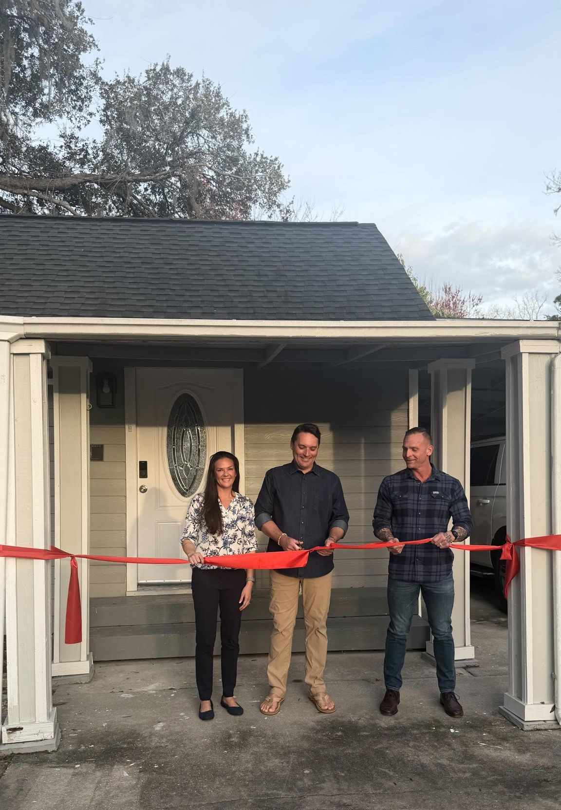 Just a couple of weeks later, on February 26th, we gathered for the ribbon-cutting. The ribbon was cut by our house naming donor, Chris Shee. It was a meaningful day for our team and our community. To stand in that space and see it ready to welcome women in, which was something we won’t forget.