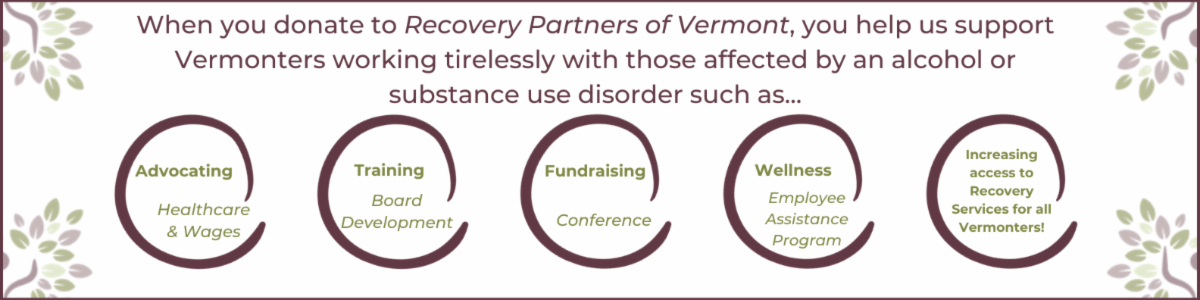 Check out the full calendar of trainings available through Recovery Vermont HERE. | |