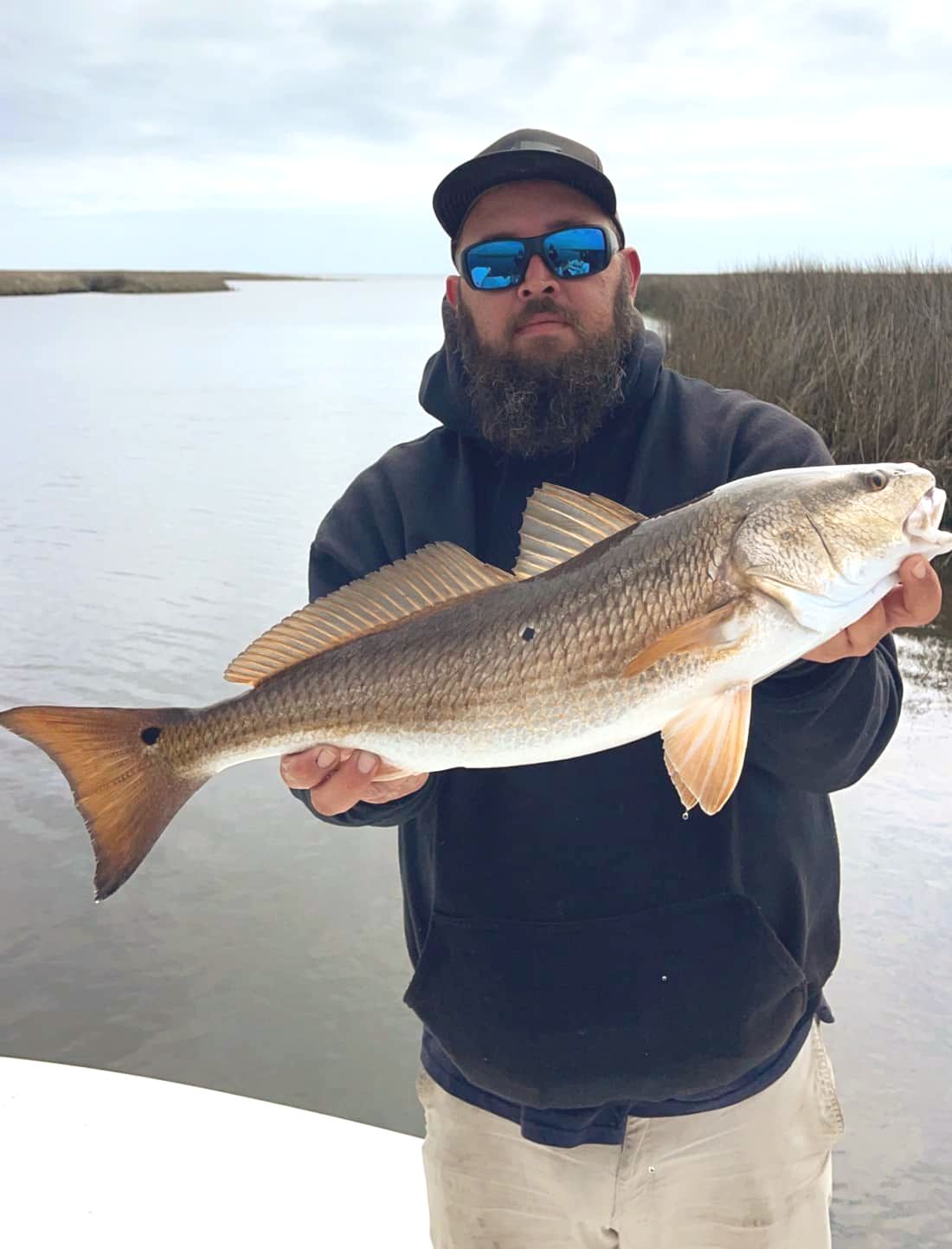 Jake Gainey is holding up a golden redfish! It must be a lucky one!