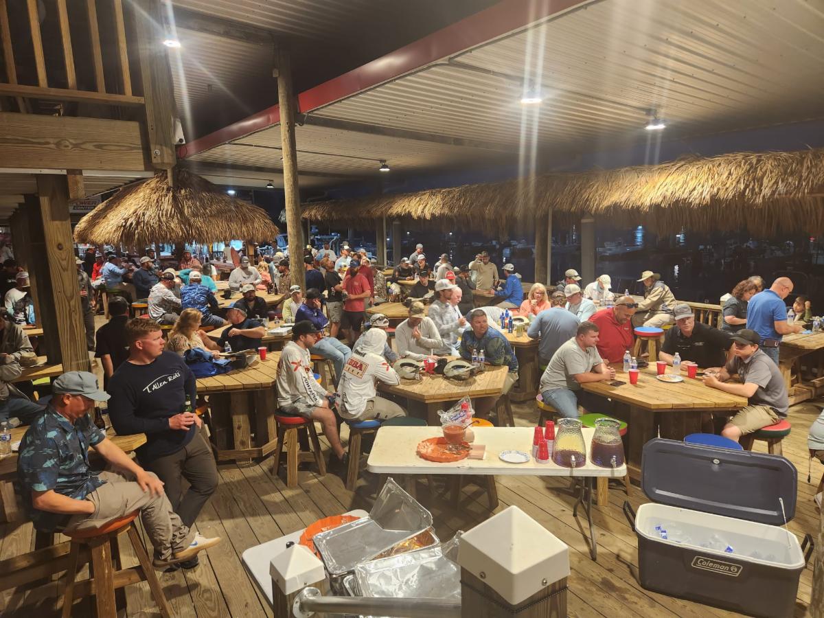 Check out the huge crowd for the Power Pole Pro Fishing Tournament Captain's Meeting.