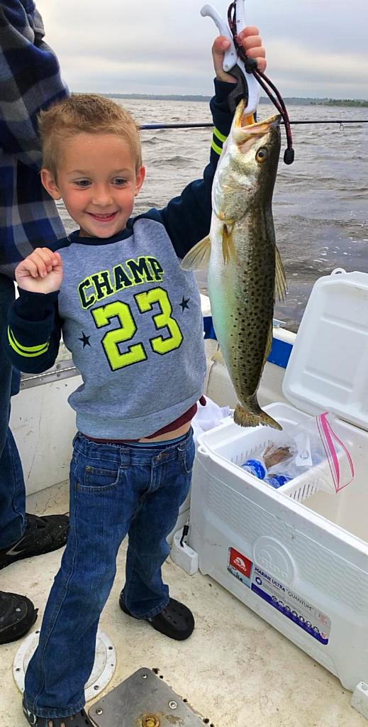 Rincon, GA, was all smiles after getting the trout in the boat!