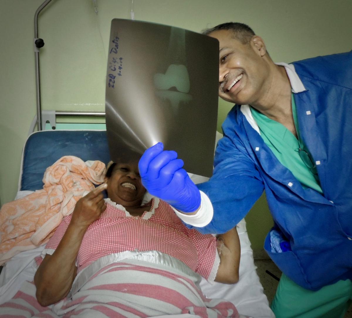 | | Dr. Kumar showing patient her new knee. Cuba 2019 | | |