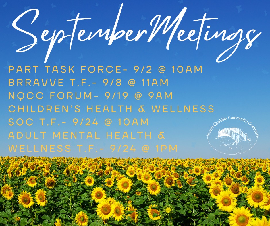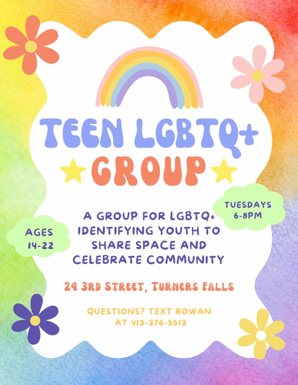 Mondays North Quabbin Patch Parents' Council | | Mondays Breaking Barriers at the Franklin County Reentry Center | | Mondays Art Guild Meetings | | Monday Drug Court Alumni Group - North Quabbin | | Mondays Community Yoga at Wildflower Alliance | | Mondays Creative Community Involvement Group | | Mondays All Recovery Meeting and Drop In Recovery Coach Support | | Mondays CNC Playgroup at the Erving Public Library | | Second Mondays - North Quabbin B.R.R.A.V.V.E. Task Force Meeting | | Mondays Alternatives to Suicide Group | | 2nd and 4th Mondays Parenting Together at the Brick House | | 2nd and 4th Mondays Council of Cultural Consciousness | | Third Monday Alphabet & Allies | | Third Monday Parenting With Pride | | Mondays and Thursdays Hygiene Supplies Pick Up at the Brick House | | Mondays and Thursdays The Brick House Food Pantry | | Tuesdays Teen LGBTQ+ Group | | Tuesdays LGBTQIA+ ALT2SU (Alternatives to Suicide) | | Tuesdays Grandparents' Support Group | |
