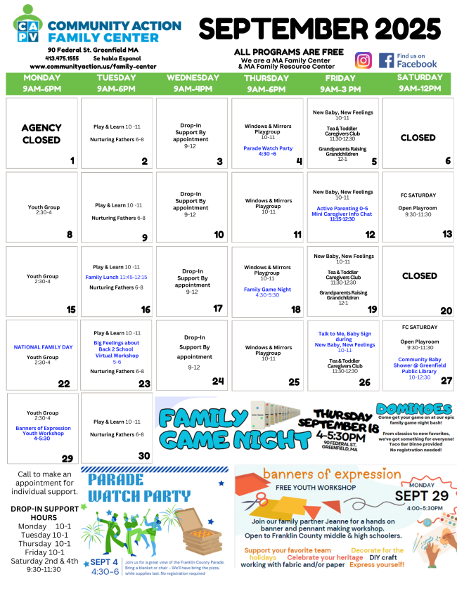 Community Action Family Center 90, Federal Street, Greenfield, MA 01301 (413) 475-1555