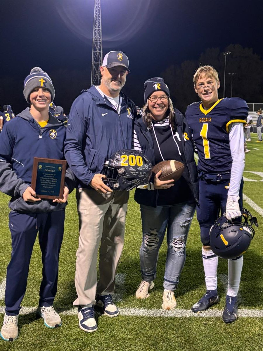 With the 69-0 win over NE Gooselake, Ed Hinkel received his 200th win in 19 years as assistant football coach at Regina High School! Congrats, Coach!!