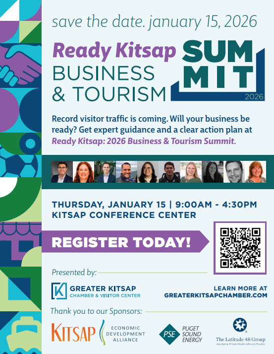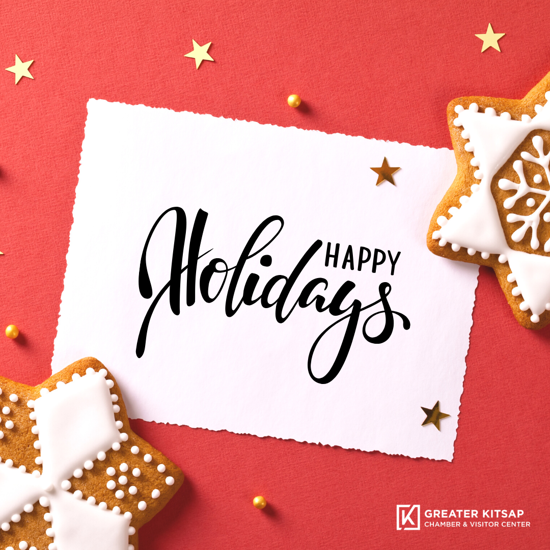 The Greater Kitsap Chamber & Visitor Center will be closed for the holidays from December 24th through January 5th. Both of our locations will be closed with staff having very limited