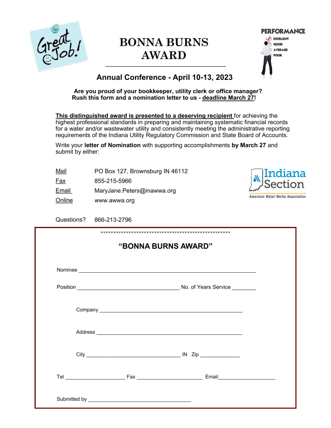 Are you proud of your bookkeeper, utility clerk or office manager? Rush this form and a brief nomination letter to us - deadline March 27th!