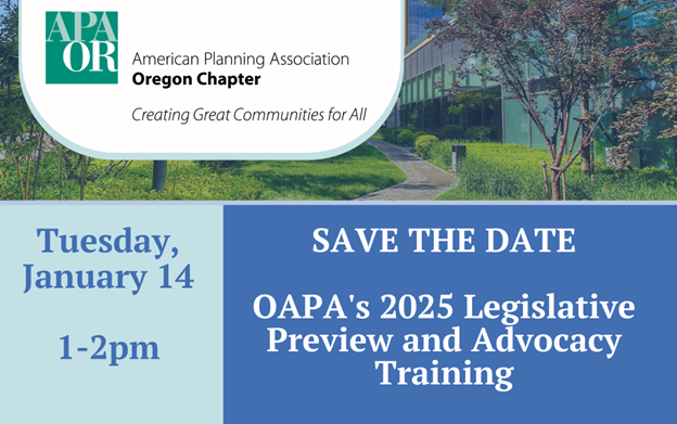 In addition to the session preview, we’ll learn how to stay up-to-date on state legislation introduced in 2025, and discuss opportunities for legislative advocacy on policies related to land use, housing, transportation, climate and Oregon’s land use planning program.