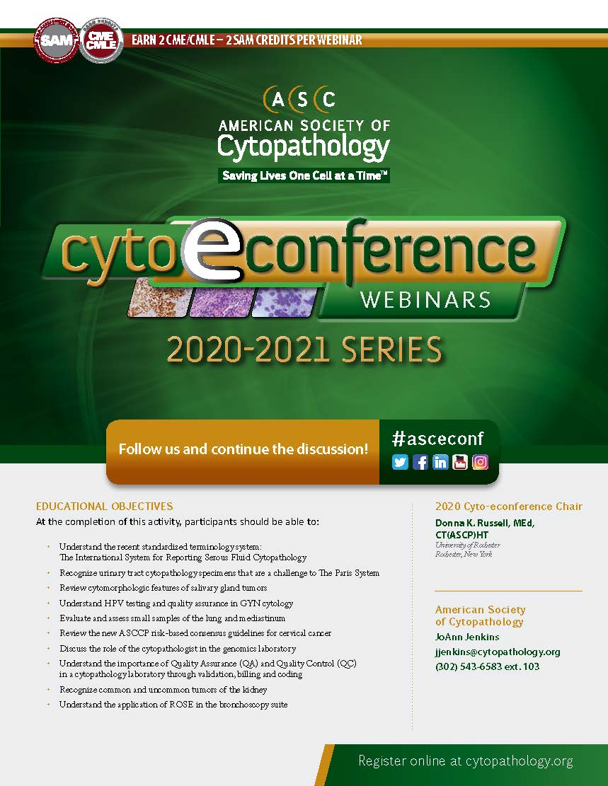 The American Society of Cytopathology is accredited by the Accreditation Council for Continuing Medical Education to provide continuing medical education for physicians.