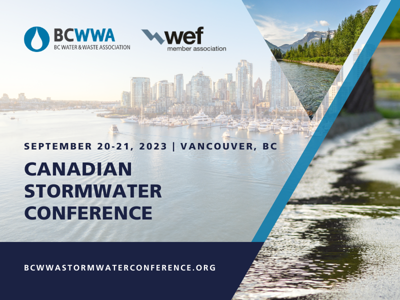Don’t miss out on earlybird rates for the upcoming Canadian Stormwater Conference! Join the BCWWA and WEF for a national conference on stormwater in beautiful Vancouver, BC, September 20-21, 2023. The conference brings stormwater professionals from across Canada to come together to learn and share about issues related to stormwater. Learn from the foremost delegates, stakeholders and more as we start the conversation about the current state of stormwater management, what solutions are needed and what’s next for stormwater systems.