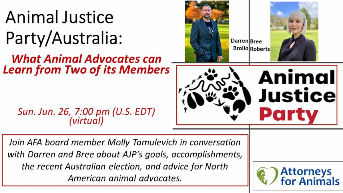 Animal Justice Party/Australia: Meet Two Members Sun., Jun. 26, 7:00 pm (US EDT)